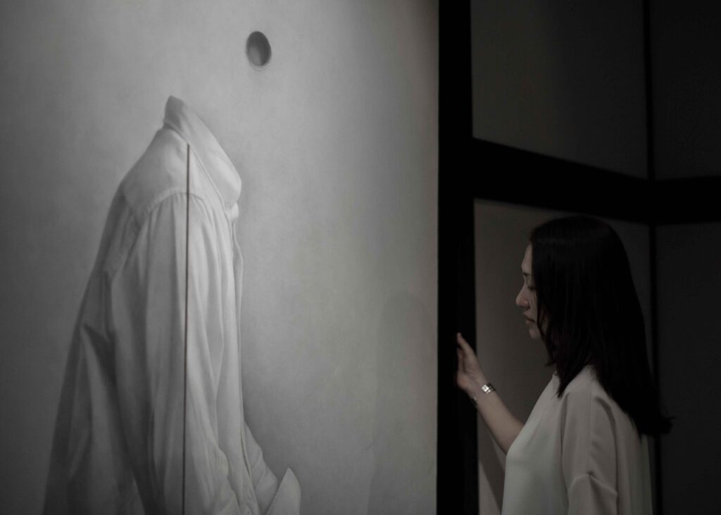 切り取られた構図、静謐で洗練された独特の世界観を写実絵画で表現する。